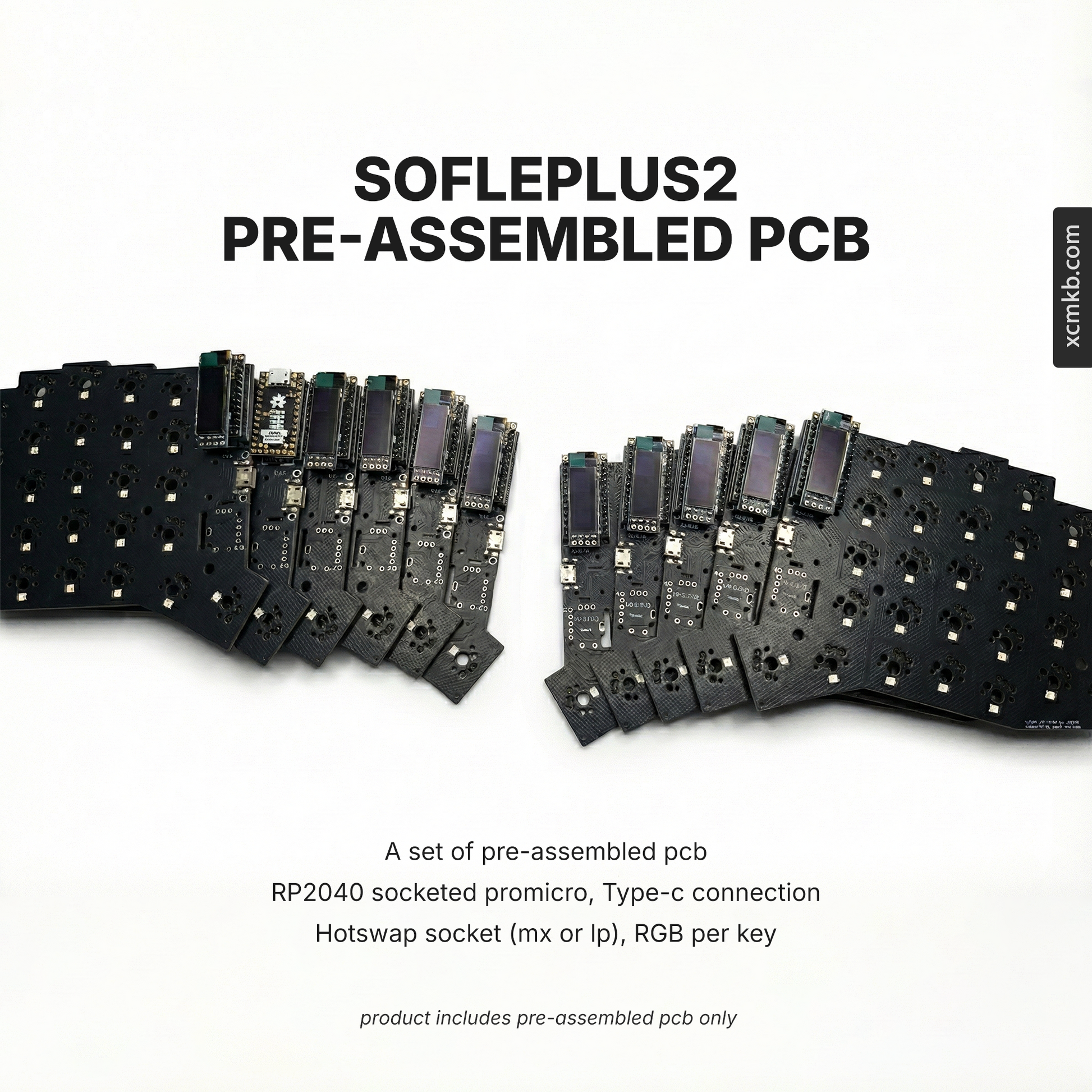 Pre-assembled split keyboard, plug-and-play, no soldering required.